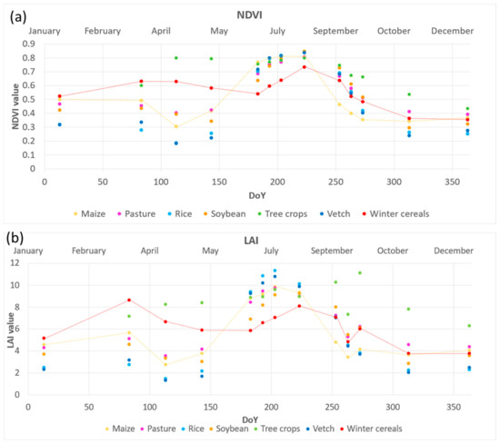 - Azar, R.; Villa, P.; Stroppiana, D.; Crema, A.; Boschetti, M.; Brivio, P.A. Assessing In-Season Crop Classification Performance Using Satellite Data: A Test Case in Northern Italy. Eur. J. Remote Sens. 2016, 49, 361–380. [Google Scholar] [CrossRef]