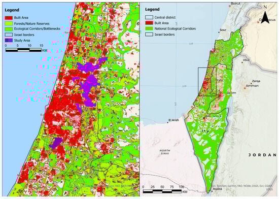- Central District Plan. Ecological Corridors 50/21/3, Israel. 2020. Available online: https://mavat.iplan.gov.il/SV4/1/99005076058/310 (accessed on 12 August 2024). (In Hebrew)