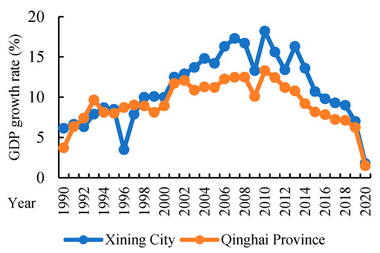 The comparison of GDP growth rate between Xining City and Qinghai Province.