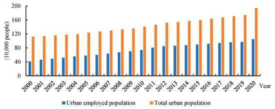 Changes in urban employees and urban population in Xining City from 2000 to 2020.