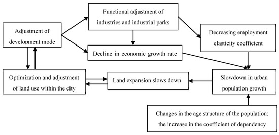 Industrial parks are crucial factors driving urban economic growth and urban expansion. This study finds that the construction of industrial parks is often the “initial factor” in the cumulative and cyclical development process of cities. Firstly, in the urban development process, the construction of industrial parks drives the economy to a new growth platform, expands the capacity to absorb labor, drives population agglomeration, and provides impetus for the construction of new urban areas. The construction of new urban areas and the expansion of industrial parks become the two major ways for the expansion of built-up areas, marking the first wave of urban development driven by industrial parks. Secondly, with the improvement of the development level, the transition from an extensive development mode solely pursuing economic growth rate to a higher-quality development mode promotes the adjustment of industrial parks, the reorientation of industrial development, and leads to a decline in economic growth rate and the employment elasticity coefficient of economic growth. On this basis, coupled with changes in the dependency ratio caused by demographic structural changes, it results in a decrease in urban population growth and urban construction land expansion. At this point, the city enters a stage of internal land optimization and adjustment, accompanied by the improvement of urban infrastructure and the gradual increase in urban per capita road area and per capita green area, marking the second wave of intensive urban development. The understanding of the process and mechanism of urban expansion driven by the construction, development, and adjustment of industrial parks, as well as the changes in the employment elasticity coefficient and the dependency ratio brought by demographic structural changes, is a key to predicting urban population size. The “initial factor” or the dominant factor leading to development and change may vary in different cities, but understanding the process and mechanism and recognizing the development patterns of the studied city should be the premise for future predictions.