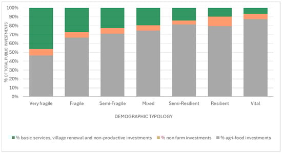 Distribution of RDP-committed funds (in Euro, 2014–2020 period) by type of investments within each demographic typology of area. Source: authors’ elaborations from the database of funded investment projects 2014–2020.