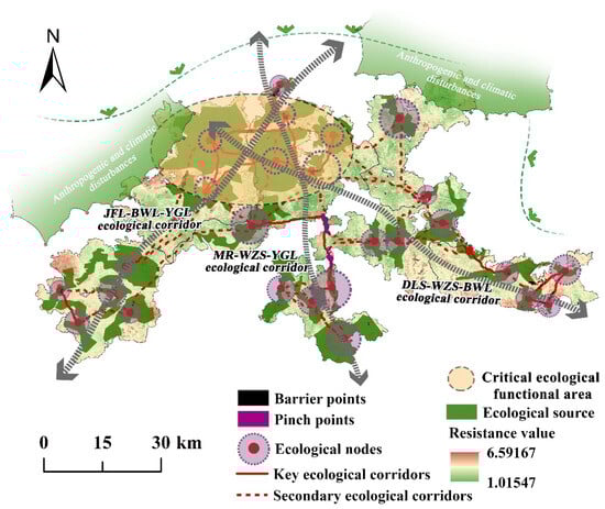 - Wu, Y.; Han, Z.; Meng, J.; Zhu, L. Circuit theory-based ecological security pattern could promote ecological protection in the Heihe River Basin of China. Environ. Sci. Pollut. Res. 2023, 30, 27340–27356. [Google Scholar] [CrossRef]