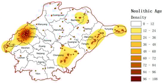 Kernel density of ancient settlements in the Neolithic Period in Sichuan Basin.