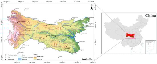 The Qinling-Daba Mountain area in central China spans the following six provinces and cities: Gansu, Shaanxi, Henan, Hubei, Chongqing, and Sichuan. Covering an area of about 300,000 km2, it extends from the eastern edge of the Qinghai-Tibet Plateau to the southwestern part of the North China Plain (Figure 2). This area includes the Qinling Mountain, Hanjiang River Valley Basin, and Daba Mountain. The Qinling Mountain marks its northern boundary, while the Micang-Daba Mountain forms the southern boundary. The area is characterized mainly by mountainous and hilly landforms interspersed with basins like Hanzhong, Ankang, Shangdan, and Huicheng. This region serves as China’s north–south transitional zone, delineating the boundaries between China’s northern and southern regions, the subtropical and warm temperate zones, and the Yangtze River and Yellow River basins. Recognized as one of China’s biodiversity hotspots, the Qinling-Daba Mountain area is rich in the distribution of endemic species, including the Sichuan golden monkey, crested ibis, giant panda, and takin. Furthermore, it is a large-scale ecological corridor linking the Qinghai-Tibet Plateau with plains in east China, affecting the nation’s biodiversity. Spanning the Yangtze, Yellow, and Huai River basins, this area is the source of several rivers, including the Huai, Hanjiang, Danjiang, and Luo rivers. The Qinling-Daba Mountain area was once an area of concentrated and contiguous poverty. Although it has been lifted out of poverty, it still faces critical economic and social development tasks. It is necessary to weigh conservation and development objectives in the ESP planning.