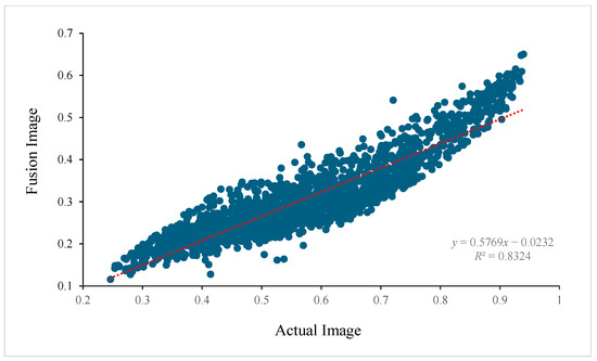 - The ESTARFM algorithm had better applicability in constructing long time series and similar time images, with a correlation coefficient R2 = 0.83 between the results of the ESTARFM fusion model and the original image.