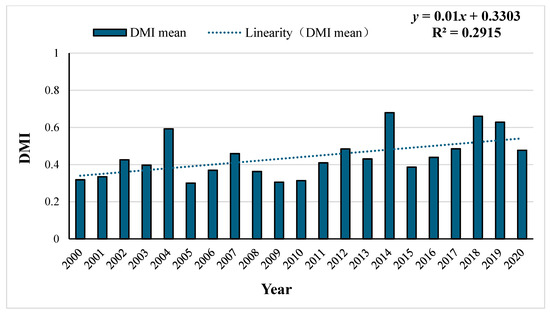 3.4. Temporal Variation in Desertification from 2000 to 2020
