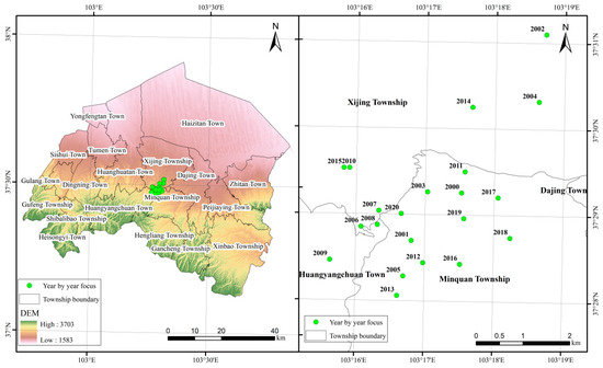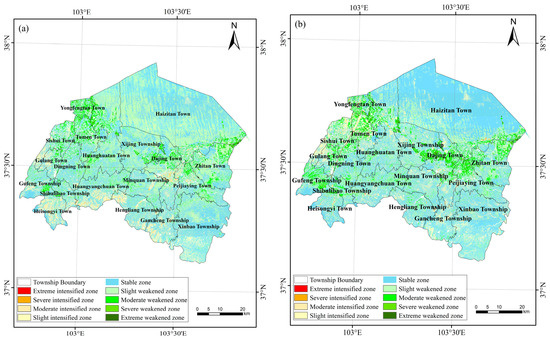 - From 2000 to 2020, the desertification in Gulang County showed an increasing trend, the desertification in densely populated areas showed an improving trend, and the desertification in sparsely populated areas showed an increasing trend. Overall, the degree of desertification gradually increased from south to north.