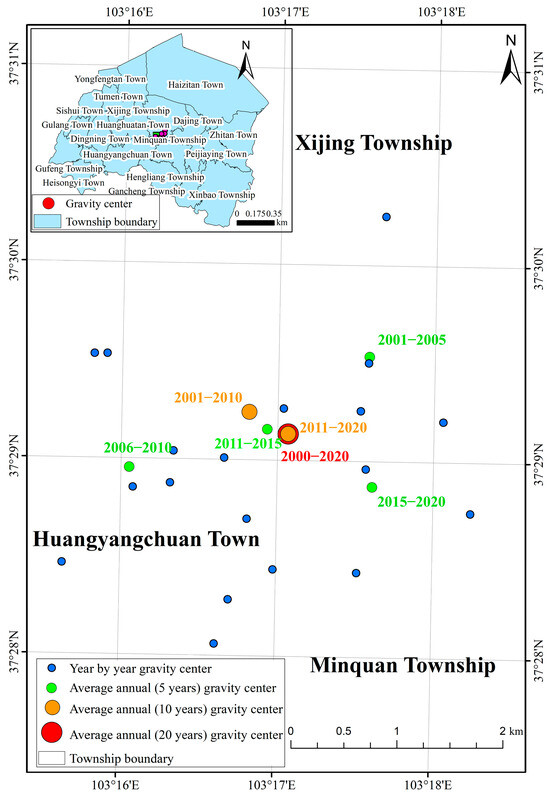 3.6. The Gravity Center Migration Trajectory of Desertification from 2000 to 2020