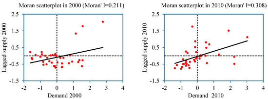 3.3.1. Moran Scatterplots of the SCS Supply and Demand