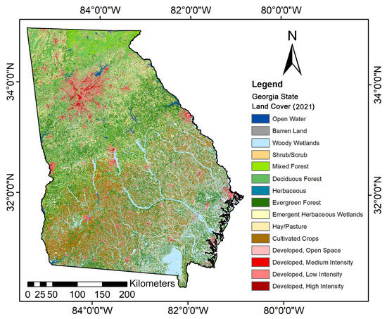 - There was an overall decrease in cultivated crops (−1.5%) and hay/pasture (−11.3%) between 2001 and 2021 in GA (Table 5). This may indicate a reduction in available farmlands overall, as well as the conversion of hay/pasture to more destructive land uses. (Relevant for UN SDG 2: Zero Hunger);