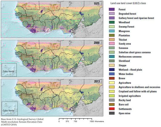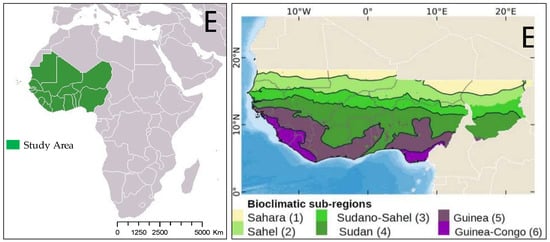 - Di Gregorio, A.; Mushtaq, F.; Tchana, E.; Aw, M.; D’Annunzio, R.; Muchoney, D.; Mamane, B.; Mahamane, M.; Assoumana, B.T.; Mimouni, M.; et al. West African Land Cover Reference System; FAO: Rome, Italy; AGRHYMET: Niamey, Niger; ECOWAS: Abuja, Nigeria; OSS: Tunis, Tunisia, 2022. [Google Scholar] [CrossRef]