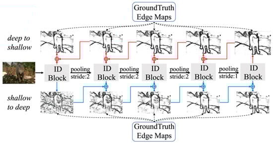 The overall architecture of BDCN. The figure illustrates how each ID Block is trained by layer-specific supervisions inferred by a bi-directional cascade structure. (The figure was adapted from He et al. [34]).