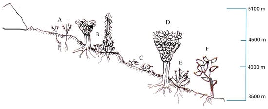 - Tovar, C.; Melcher, I.; Kusumoto, B.; Cuesta, F.; Cleef, A.M.; Meneses, R.I.; Halloy, S.; Llambí, L.D.; Beck, S.; Muriel, P.; et al. Plant dispersal strategies of high tropical alpine communities across the Andes. J. Ecol. 2020, 108, 1910–1922. [Google Scholar] [CrossRef]