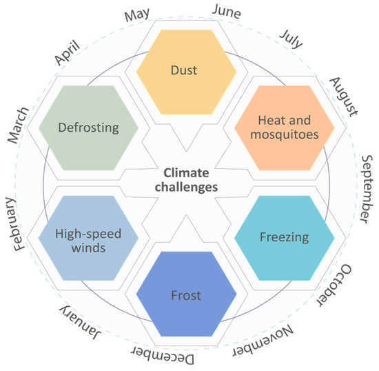 The issues of forming a comfortable urban infrastructure in cities with a cold climate, including the cities of the Far North, represent a wide range of studies [4]. What is common is that they all aimed at studying the features of the sustainable development of the urban environment in the conditions of the cold climate [5]. As climatic problems for the formation of a comfortable and safe environment, the following are singled out (Figure 1):