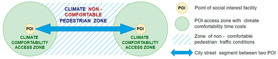 - Time of climate comfort access to POI—t, min;