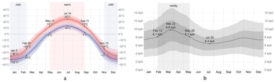 The climatic conditions of the Far North are among the harshest for human habitation. Nevertheless, many cities are located in the Polar Circle zone. For example, in Russia, the northern territories occupy 70% of the country and, according to the climatic conditions, are divided into discomfortable, extremely discomfortable and absolutely discomfortable. More than 150 cities and many rural settlements are located in such conditions. The harsh climate is expressed not only in a long period of cold temperatures but also in strong winds, as well as summer heat in the short period of summer and a large number of insects. Thus, the conditions are uncomfortable for being outdoors for almost the whole time of the year.