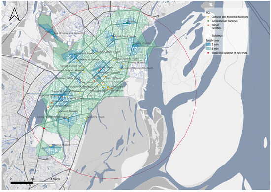 Results of the automated algorithm in the GIS to define the required locations of planned POIs for the average climatic parameters.