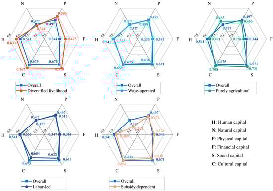 - The normalized levels of human capital (0.541), social capital (0.671), and cultural capital (0.645) are relatively high among farmers in the study area, while the levels of natural capital, physical capital, and financial capital are comparatively low.