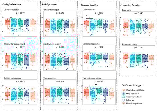 5.1. Differences in Landscape Service Cognition and Behavioral Intentions Among Farmers with Different Livelihood Strategies