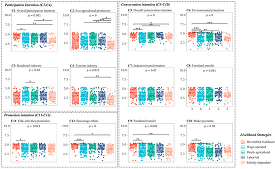 4.3. Differences in the Behavioral Intentions Among Farmers with Different Livelihood Strategies