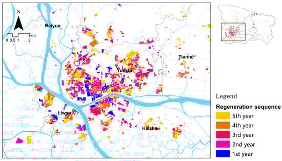 Guangzhou has gained extensive experience in urban regeneration [,]. In 2017, it was selected as one of the 15 pilot cities for old community regeneration in China. However, Guangzhou’s regeneration efforts have predominantly relied on government initiatives and fiscal funding [,]. For instance, in 2019, over 87% of the funds for old community regeneration came from public finances []. Additionally, the current practice of implementing single projects by individual entities has hindered the comprehensive utilization of spatial resources within and around communities []. So, it is essential to adopt a municipal-level approach to regeneration, supported by systematic resource surveys and value assessments, to promote the coordinated use of spatial assets.