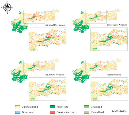 Land use simulation under multiple scenarios in Zheng–Bian–Luo rural area in 2035.