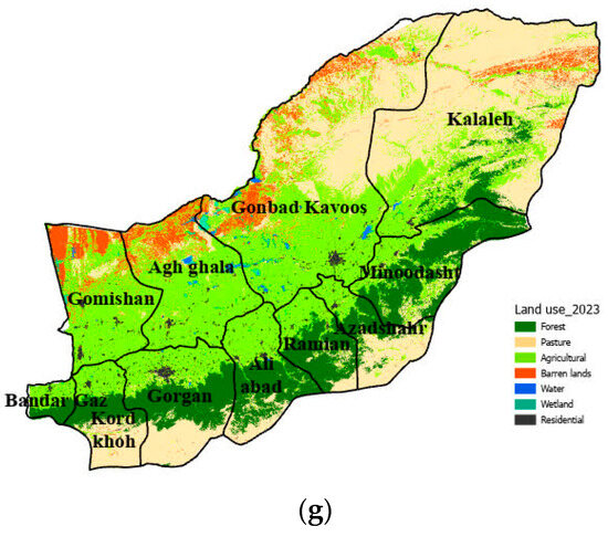 - Silakhori, E.; Maleki, S.; Pourghasemi, H.R. Spatiotemporal Variations in Land Use of Mahvelat Plain in Iran Using Google Earth Engine from 2011 to 2030. In Advanced Tools for Studying Soil Erosion Processes; Elsevier: Amsterdam, The Netherlands, 2024; pp. 413–433. [Google Scholar]