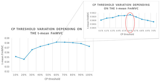 The theoretical FmMVC variation as the CP threshold varies and the optimal setting of the CP threshold as a function of FmMVC (by taking the maximum value).
