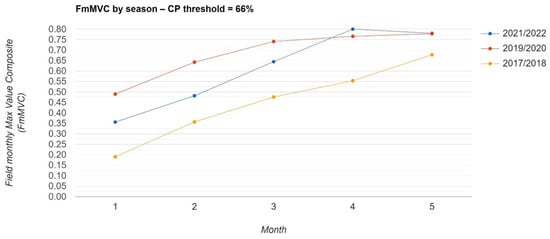 FmMVC by season calculated over the wheat field under investigation using the 66% CP threshold value.