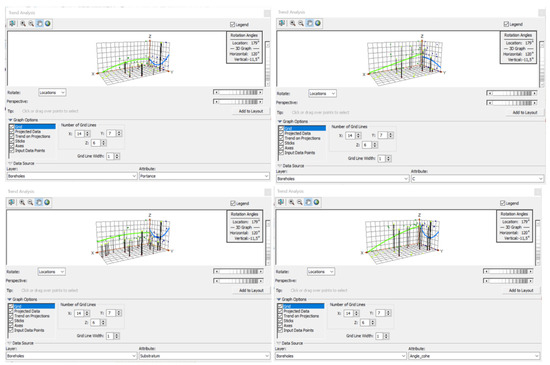 The trend analysis tool shown in Figure 8 identifies the presence of a drift, which is considered the average trend of the variable. For all four variables, the trend maps reveal the presence of drifts evaluated by second-order polynomials, which assume that our dataset is not stationary.