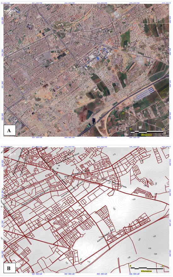 (A) The urban planning of Moulay Rachid Zone, Casablanca. (B) Detailed urban zoning of Moulay Rachid Borough.