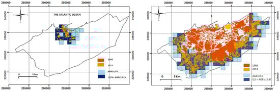 Figure 14 maps the urban sprawl of the entire Casablanca prefecture between 1900 and 2011. The section studied in this article and mapped in Figure 1 represents the southeastern part of the city of Casablanca.