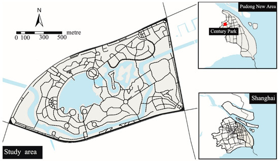 The research case Century Park (Figure 1) is located in Pudong New District of Shanghai, China. Century Park opened in 2000 and covers an area of 154.16 hectares, making it the largest urban comprehensive park in central Shanghai. The park integrates ecological, recreational, and cultural service functions, highlighting its significant ecological importance within the region. The area and proportion of different land use types are shown in Table 1 (data accessed in 2023).