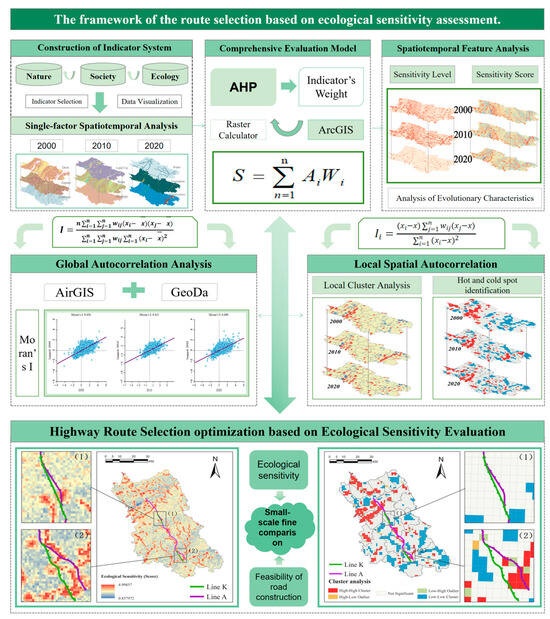 Yang, F.; Tang, Y.; Xiong, S.; Gu, C.; Xiao, Y. Development of Highway Construction Route Selection Based on Ecological Sensitivity Evaluation and Intervention Optimization Strategy Research. Land 2024, 13, 1850. https://doi.org/10.3390/land13111850