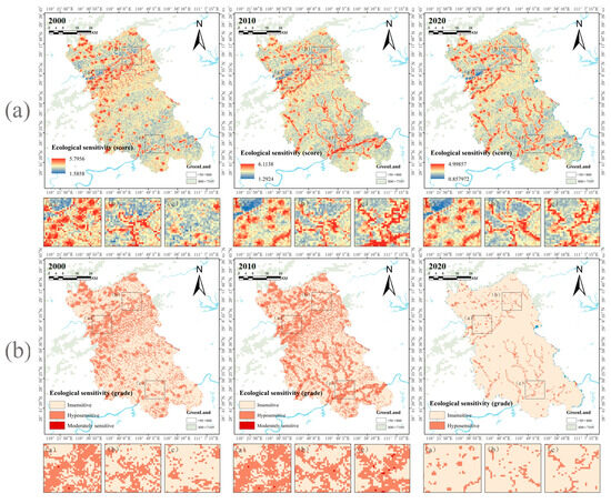 2.3.1. Analysis of the Spatial and Temporal Evolution of Ecological Sensitivity