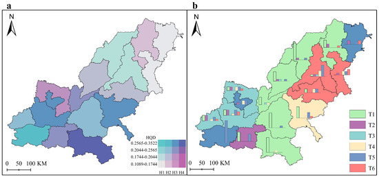 The overall HQD in the cities along the Lower Yellow River experienced a decrease followed by an increase, reaching its lowest point in 2010. There are several main reasons for this phenomenon. Firstly, rapid urbanisation has led to the destruction of the ecological environment. Around 2008, China accelerated the process of urbanisation, with a dramatic expansion of land for construction, encroaching on a large amount of cropland and natural ecological space [52]. This brash land use has led to declining agricultural and ecological functions in the HQD. In addition, urbanisation has greatly contributed to the construction of infrastructure and secure housing projects, providing a strong impetus for enhancing urban functions [53].