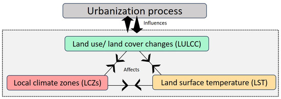 Figure 1. Relationship between urbanization process, LULCC, LCZ and LST.