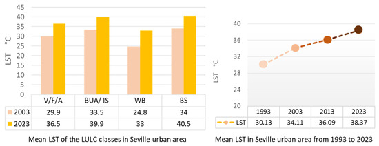 Previous research has often focused on isolated aspects of urbanization, such as land use changes or short-term temperature variations. However, this study addresses both the long-term effects of urbanization on microclimate and the interaction between multiple factors, including urban growth patterns and climate resilience strategies. This research employs advanced methodologies such as remote sensing, geospatial analysis, and machine learning, which were not widely utilized in earlier studies. The integration of these technologies allows for a more comprehensive understanding of how Seville’s urbanization has influenced its microclimate, particularly in terms of long-term LST changes. By applying multi-temporal satellite data and predictive modeling techniques, this study fills a significant gap in the literature, particularly in Mediterranean climates where urban growth patterns and climate dynamics are complex and interdependent and help to identify areas most vulnerable to temperature increases and other climatic changes due to urbanization, which is essential for developing strategies to mitigate the negative effects of urbanization and improve urban sustainability.