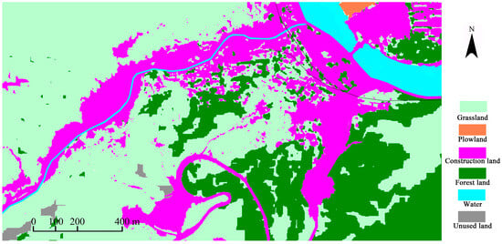 By comparison, the proportions of grassland, construction land, and unused land decreased by 25.68, 3.12, and 2.38%, respectively; the proportions of plowland and forest land increased by 6.61 and 24.57%, respectively; and the proportion of water areas did not change.