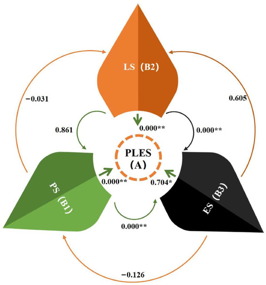 3.3. Results of Longitudinal Analysis: The Difference in Evaluation Indices, Calculation of Weight Coefficients, and Analysis of PLES Index