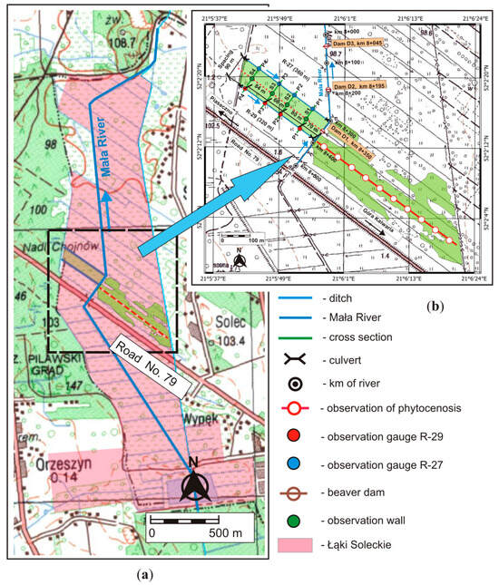 - Oleszczuk, R.; Urbański, J.; Pawluśkiewicz, B.; Bajkowski, S.; Małuszyński, M.J.; Małuszyńska, I.; Jadczyszyn, J.; Hewelke, E. Impact of beaver dams on surface channel capacity and phytocoenoses diversity of Łąki Soleckie (PLH140055). J. Water Land. Dev. 2024, 61, 96–105. [Google Scholar] [CrossRef]