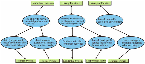 Connotation of the “production–living–ecology” function(PLEF) from the perspective of the human settlement environment.