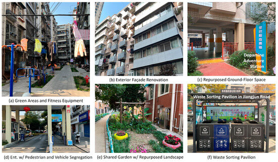 Reflecting the broader benefits of NMIR, China has increasingly embraced this approach to address the evolving challenges and diverse demands within urban residential neighbourhoods. Attention towards NMIR gained momentum in 2018 when, during a visit to Guangzhou, President Xi emphasised the importance of ceasing large-scale demolitions and reconstructions in urban planning, advocating instead for NMIR to preserve and accentuate local characteristics. This perspective was further institutionalised through policy directives. In 2019, the Ministry of Housing and Urban-Rural Development (MOHURD) released the Guidance for the Co-Creation of a Quality Environment and a Better Life in the Construction and Improvement of Urban and Rural Habitat, followed by the State Council’s (SC) Guidance for Comprehensively Promoting Neighbourhood Rehabilitation in 2020. Additionally, MOHURD, along with other departments, issued Opinions on Carrying Out Actions to Make Up for Shortcomings in the Construction of Urban Residential Neighbourhoods. They signalled a strategic shift toward a micro-rehabilitation or small-scale, human-centred renovation approach (commonly referred to as weigaizao or NMIR), replacing large-scale redevelopment as the primary renewal model [16,17]. Subsequently, local governments in major cities such as Shanghai, Guangzhou, and Wuhan have delineated NMIR objectives, processes, and operational mechanisms through regulations and technical guidelines, recommending specific renewal measures1.