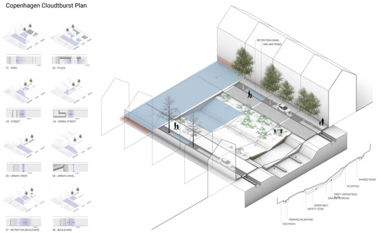 - Whitesides, A.; Clingen, K. Copenhagen Cloudburst Plan. Harvard University. 2023. Available online: https://www.gsd.harvard.edu/project/copenhagen-cloudburst-plan/ (accessed on 28 October 2024).