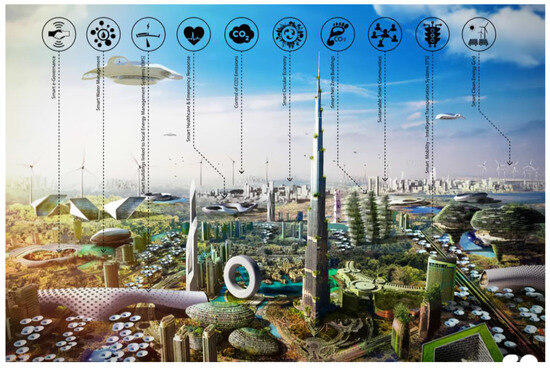 Smart Dubai Initiative (Dubai, UAE). Visualization of a high-tech project and futuristic architecture reflecting the vision of a smart and advanced city [80].