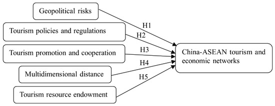 Despite ongoing tourism cooperation between China and the ASEAN, the tourism relationship between China and ASEAN countries has not been fully studied due to its unique background and the distinct geographical, geopolitical, and economic characteristics of the region. In particular, geopolitical issues between these countries have persisted and escalated in response to changes in the international structure. For example, the territorial dispute in the South China Sea has consistently posed an obstacle to cooperation and development between China and ASEAN countries. Some countries have also used geopolitics as a tool to limit tourist flows and to assert their positions regarding the South China Sea [41]. Therefore, the complex geopolitical issues surrounding the South China Sea dispute are likely to alter the geopolitical risks between China and the ASEAN, subsequently impacting tourism economic exchanges between the regions. Based on the above discussion, we proposed the following hypothesis: