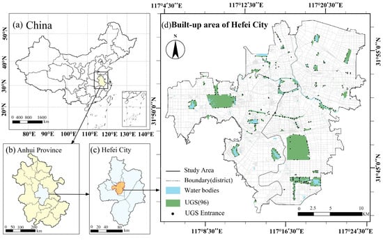 - Chen, Y.; Huang, Q.; Zhang, Y.; Li, Y. GIS-based analysis and evaluation for the accessibility of urban green in the central city of Hefei. J. China Agric. University. 2015, 20, 229–236. (In Chinese) [Google Scholar]