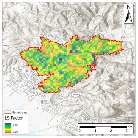 Lastly, mitigation actions could be conducted by also focusing on fire-independent factors, in particular, the LS factor reshaping the steepest slopes (e.g., adding contour terraces). These slope reduction actions can lead to the slowing down of runoff, allowing for an increase in water infiltration and providing an additional mechanical stabilization. The continuous monitoring of soil loss and vegetation recovery [67] should also be the key point for modifying mitigation strategies and adapting them at current erosion rates.