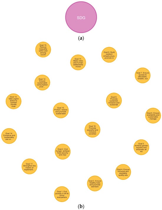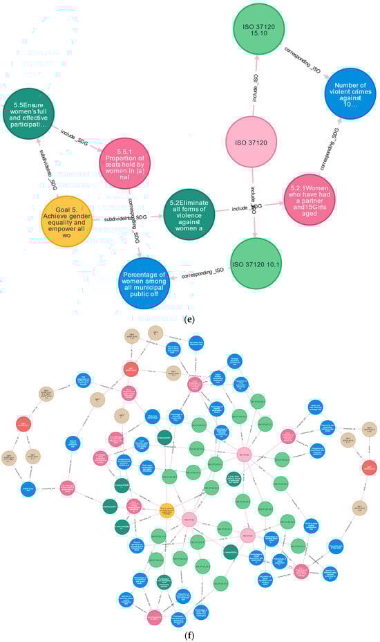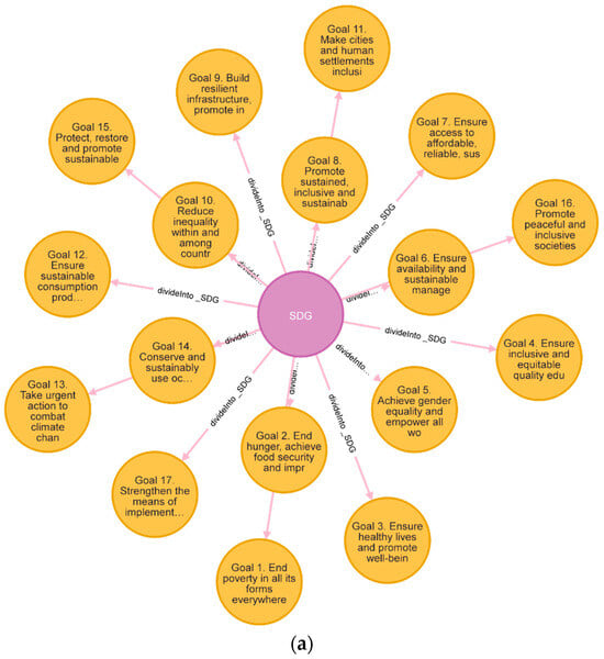 Thirdly, as an advanced intelligent decision-making assistance tool, the knowledge graph provides efficient and accurate decision-making support for urban management stakeholders with its unique structure and function. From the perspective of scientific principles, the knowledge graph is constructed based on a complex semantic network and relational model. Through deep data mining and semantic understanding, it forms a highly structured knowledge system of entities and relationships. In practice, urban management involves numerous stakeholders, each with different concerns and decision-making requirements, which are often closely associated with specific SDG goals. The knowledge graph can precisely meet these needs. When users initiate the SDG goals they are concerned about, the algorithms and models behind them will swiftly search and match across the knowledge network, providing supporting standards and indicator tools to achieve the goals. For example, for urban planners focusing on SDG11 (sustainable cities and communities), the knowledge graph can accurately identify all relevant supporting standard documents related to the goal, which may include urban infrastructure standards, public service accessibility standards, etc., while also quickly locating specific indicator tools to measure the achievement of these standards, such as the green space coverage and the service radius of public transport stations. This matching process is highly scientific and precise, and it is based on a carefully constructed entity–relationship model in the knowledge graph. These models have been rigorously verified and optimized to ensure that every correlation conforms to the internal logic and scientific laws of urban development. In this way, the knowledge graph provides a scientific and rational basis for urban management stakeholders to make decisions that meet the requirements of sustainable development based on accurate data and clear relationships in the face of complex urban development issues. In particular, the knowledge graph has demonstrated excellent performance in querying indicators against the SDG goals or specific domains (e.g., the environment and economy). In the environmental field, the knowledge graph can quickly provide detailed and targeted information on indicators such as water quality monitoring and sewage treatment rates for SDG6 (clean water and sanitation)-related decisions. In the economic field, for SDG8 (decent work and economic growth), it can present key economic indicators such as the unemployment rate and labor productivity and assist economic policymakers and city managers in comprehensively understanding the status quo of economic development and the achievement of SDGs so as to formulate more scientific and reasonable development strategies and decision-making programs.